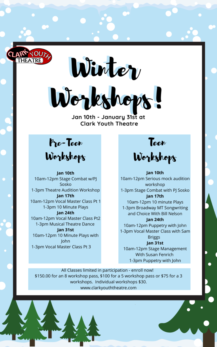 As always, if you need to make a partial payment that is not on the payment menu, or would like to discuss payment arrangements or scholarship, please call the office at 918-596-1412 or email Tammy at tammy@clarkyouththeatre.com